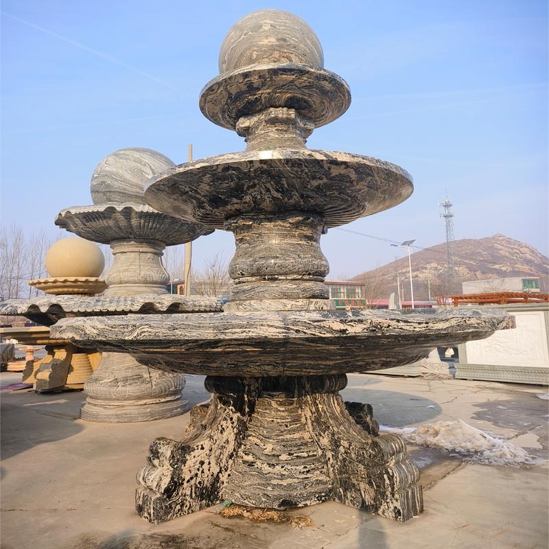 Batu ukiran air mancur matahari terbenam merah feng shui bola gaya Eropa batu karat kuning luar ruangan marmer halaman villa mengalir air dekorasi lanskap