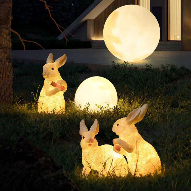 Lampu dekorasi taman tenaga surya resin, lampu dekorasi model hewan, lampu lanskap taman tenaga surya, lampu serat kaca bercahaya, lampu simulasi kelinci luar ruangan