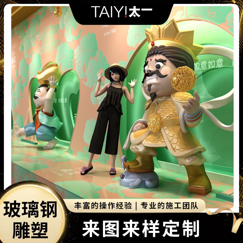 Patung kartun serat kaca dekorasi lantai maskot besar luar ruangan taman belanja model patung boneka