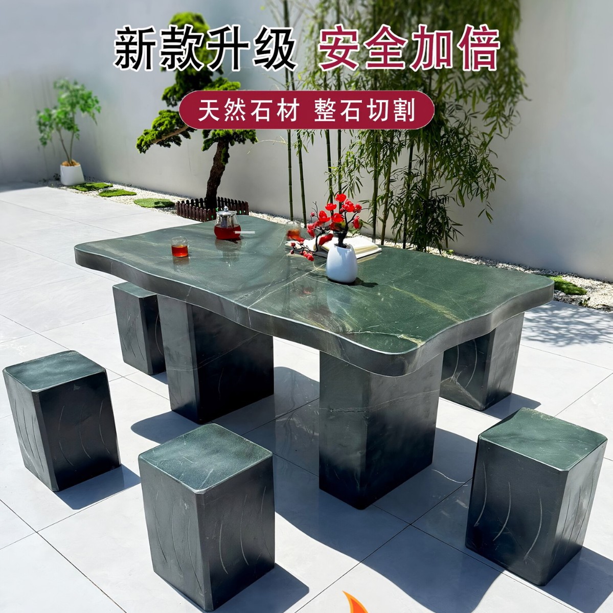 Batu Meja Bangku Batu Halaman Taman Satu Set Luar Ruangan Rumah Tangga Marmer Alam Meja Panjang Villa Batu Meja Kursi