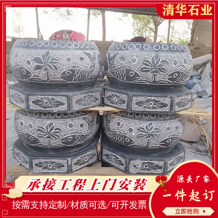 Pot Bunga Panci Ikan Ukiran Batu Menhai Pot Bunga Panci Ikan Kuno Antik Batu Panci Bunga Teratai