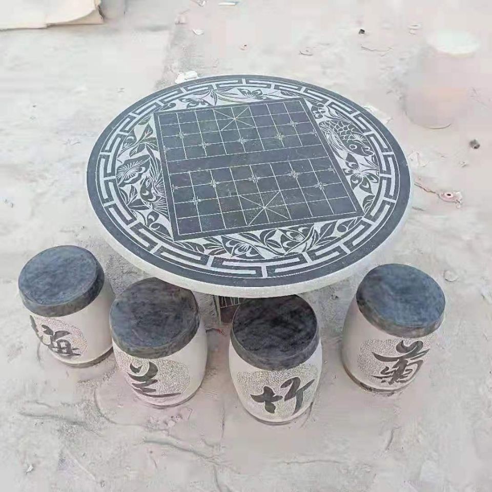 Bangku batu meja taman, batu marmer luar ruangan, Meja batu taman bulat dan kursi dekorasi meja batu catur