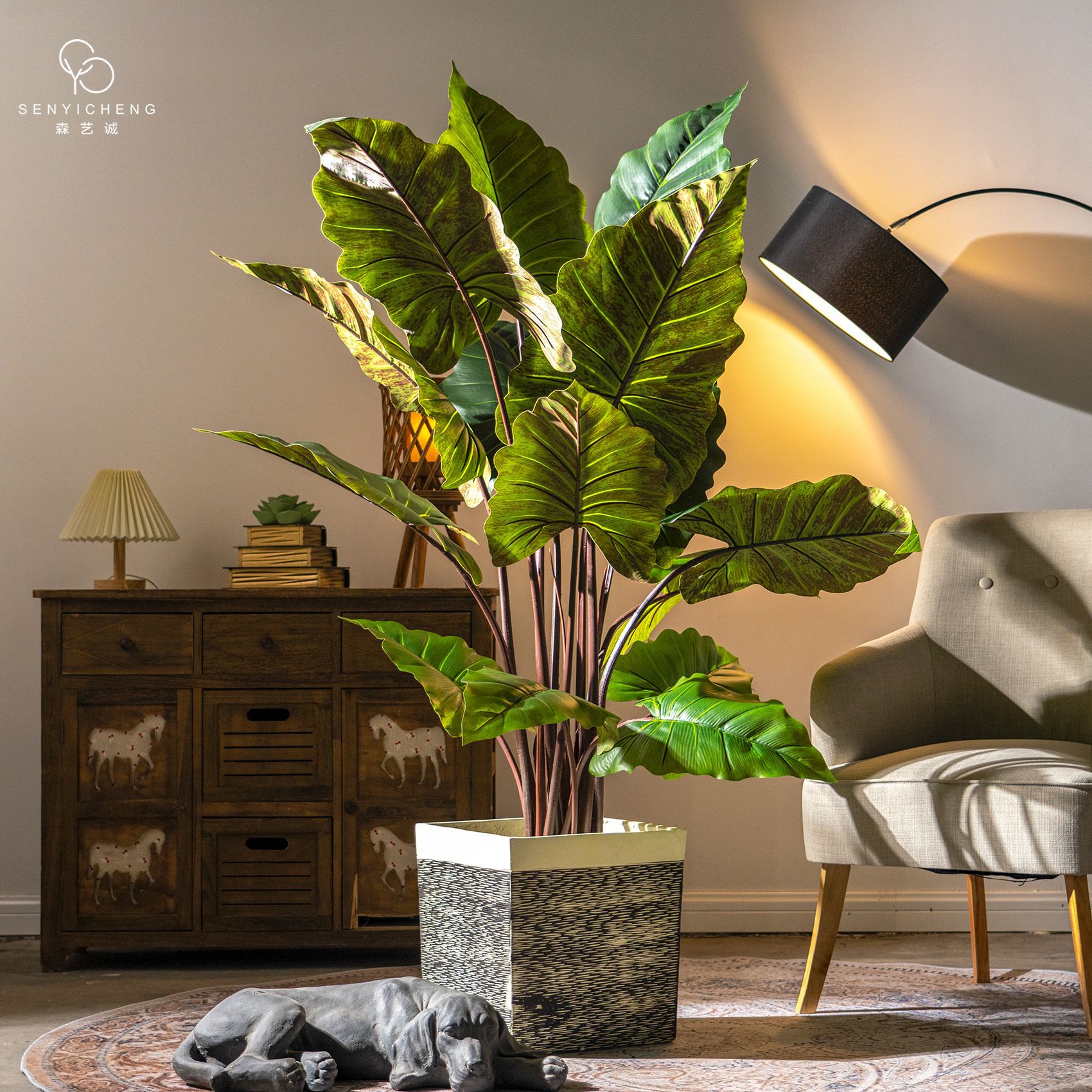 Tanaman broadleaf buatan besar, pohon buatan bonsai pelangi dekorasi lanskap tanaman hijau bionik ruang tamu dalam ruangan