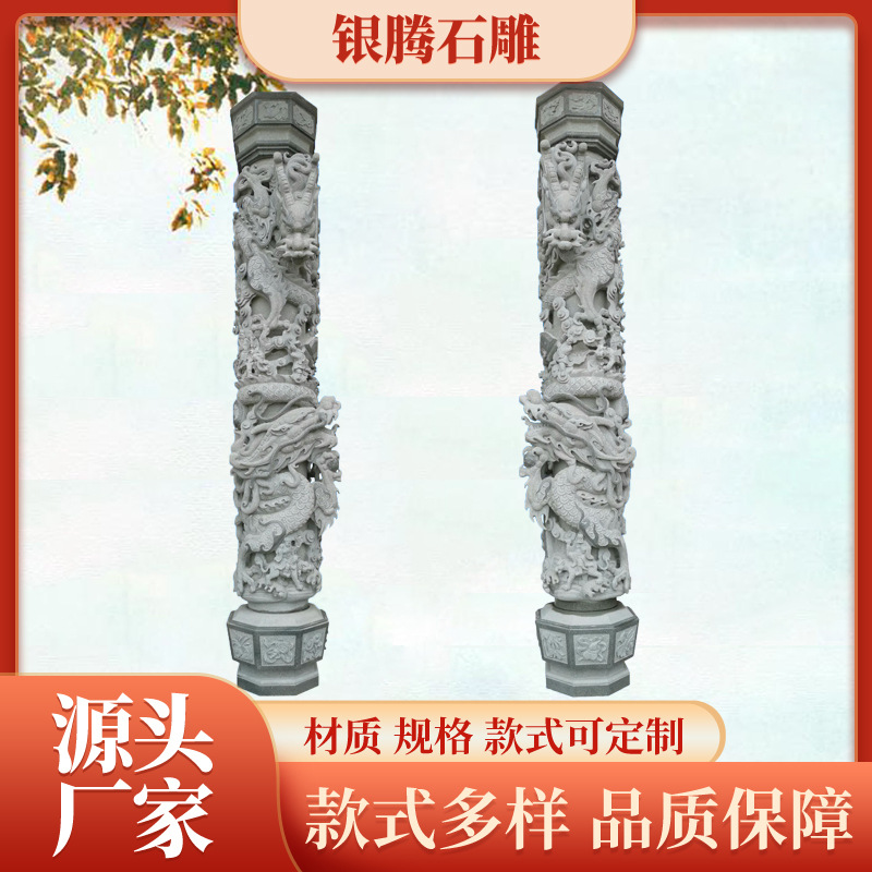 Kolom ukiran naga batu granit alami kolom jam marmer kolom budaya persegi butik Cina kolom naga dekoratif