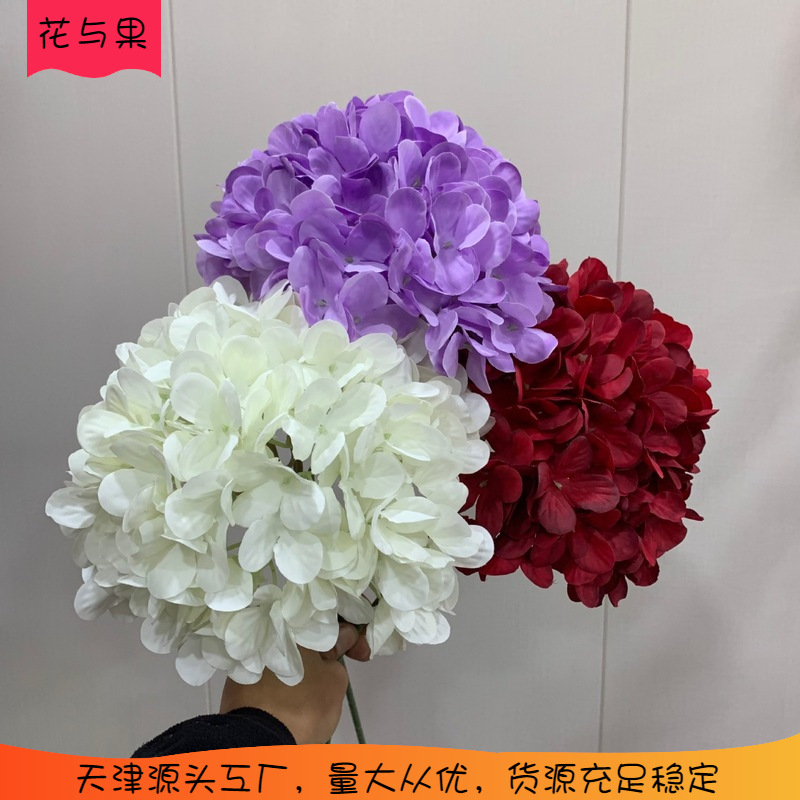 Bunga palsu hidrangea besar tunggal pabrik bunga pernikahan buatan dekorasi Kecantikan rumah luar ruangan bunga palsu grosir