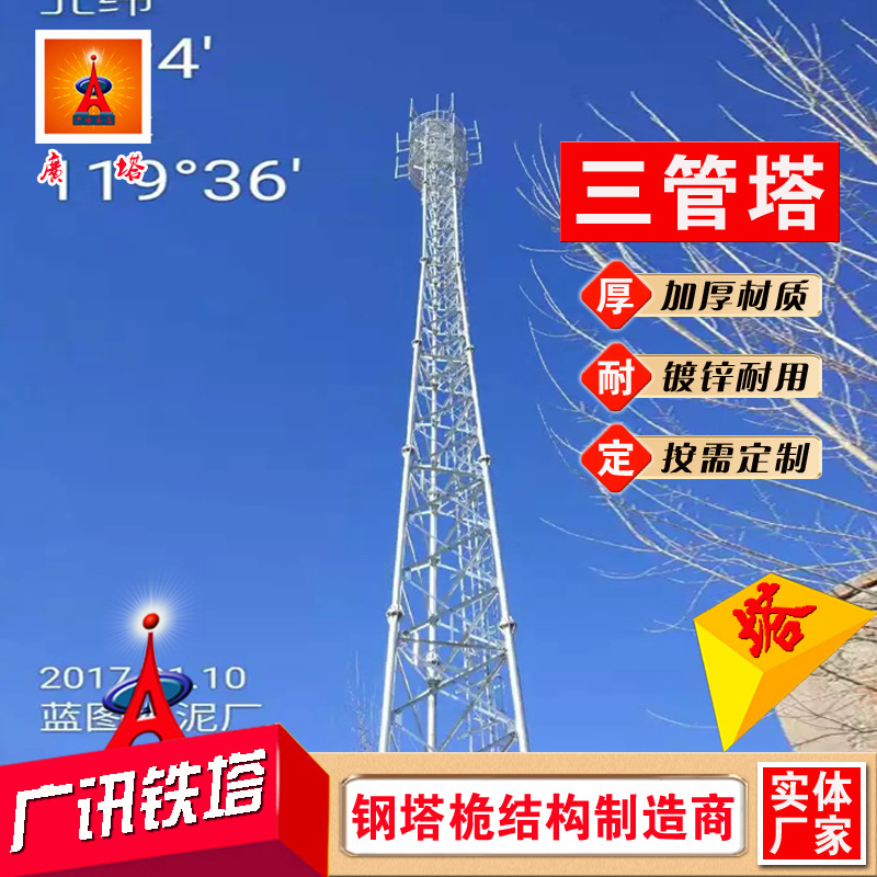 Menara Tiga tabung telekomunikasi 25 m menara tiga tabung Unicom struktur baja 20 m hot dip galvanis menara komunikasi daya baja menara tabung