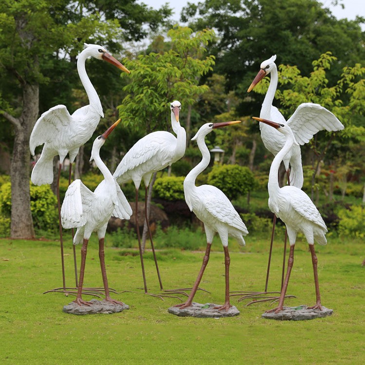 Dekorasi bunga egret simulasi luar ruangan, kolam taman air mancur dekorasi lanskap model Patung FRP besar