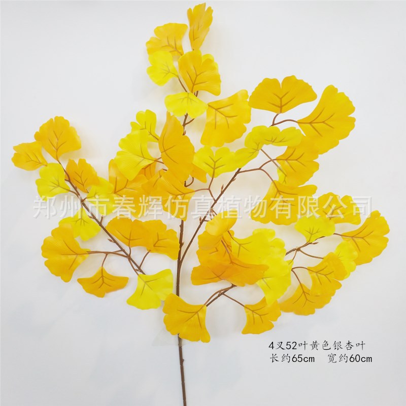 Daun ginkgo plastik daun palsu buatan, dekorasi daun ginkgo kuning buatan, Aksesori daun palsu teknik taman