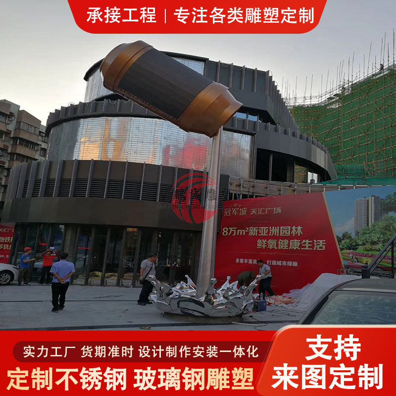 Pabrik patung baja tahan karat botol bir berongga lanskap taman kreatif luar ruangan lantai besar ornamen patung baja tahan karat