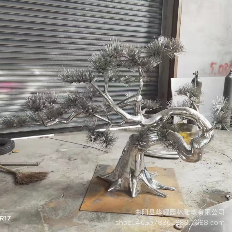 Ornamen abstrak patung pemandangan pohon pinus selamat datang, hotel kantor besar lantai taman lanskap Kolam renang