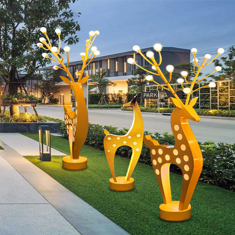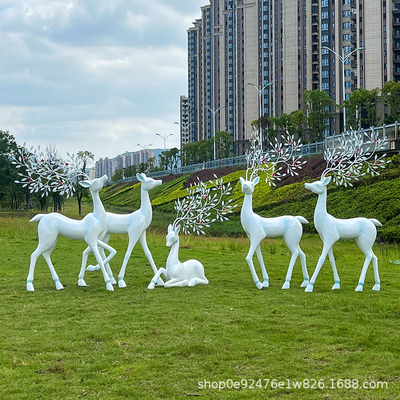 Ornamen rusa keberuntungan gaya sederhana abstrak rusa besar persegi lanskap taman luar ruangan dekorasi lanskap serat kaca