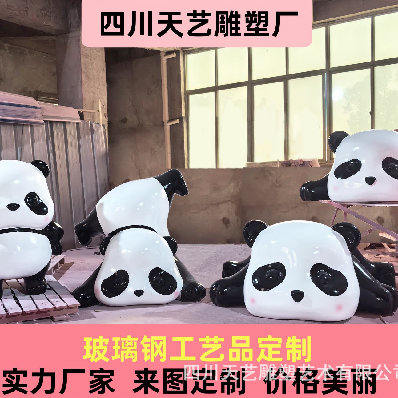 Kerajinan panda kartun dari fiberglass untuk jalanan komersial, taman luar ruangan, lapangan taman, patung kustom.