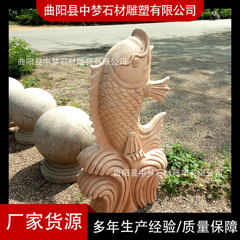 Dalam stok matahari terbenam merah ikan mas semprotan air patung ikan dekorasi lanskap komunitas kolam teratai halaman taman patung