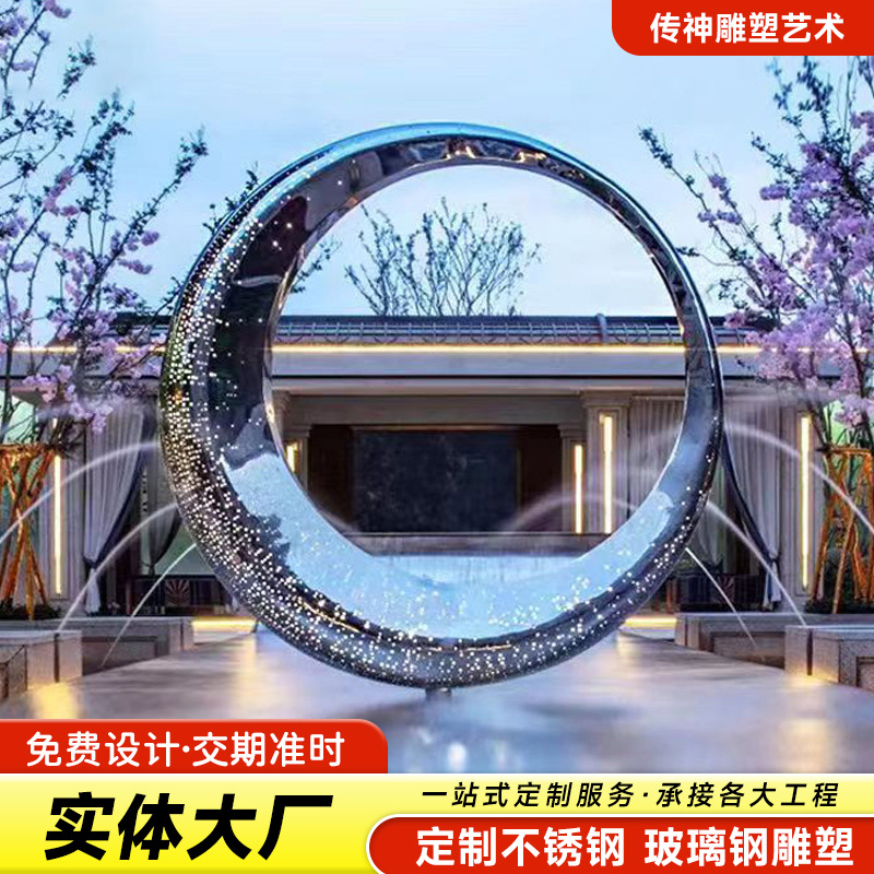Lanskap ikonik Departemen Penjualan Patung Waterscape Real Estat Plaza Patung Cat Air Cermin Stainless Steel Skala Besar