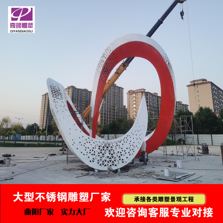 Produsen patung baja tahan karat Shanghai pemandangan taman besar kustomisasi patung baja tahan karat kota luar ruangan logam abstrak