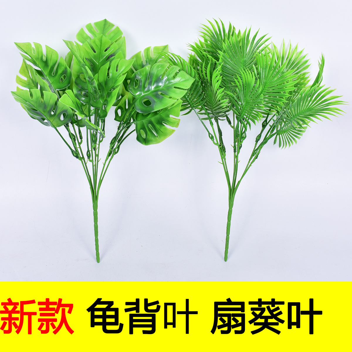 Tanaman buatan balok pegangan besar Wannianqing 12-kepala lem rasa daun tanaman buatan Aksesori Dinding kebun Teknik