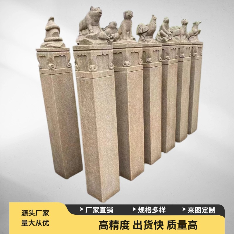 Ornamen dekorasi taman kolom kuda dasi zodiak dua belas Kirin antik singa antik berlian biru pasokan langsung pabrik tumpukan kuda