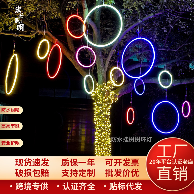 Lampu Lingkaran Bercahaya LED Menggantung Lampu Cincin Harapan Pohon Lampu Cincin Tahan Air Luar Ruangan Lampu Hias Jalan Lampu Rampai