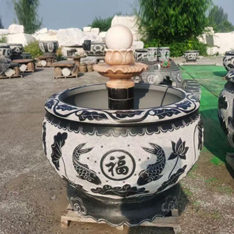 Silinder Silinder Silinder Silinder Silinder Marmer Panci Bunga Panci Ikan Berkata Fu Dekorasi Lanskap Halaman Villa Dekorasi Silinder Teratai