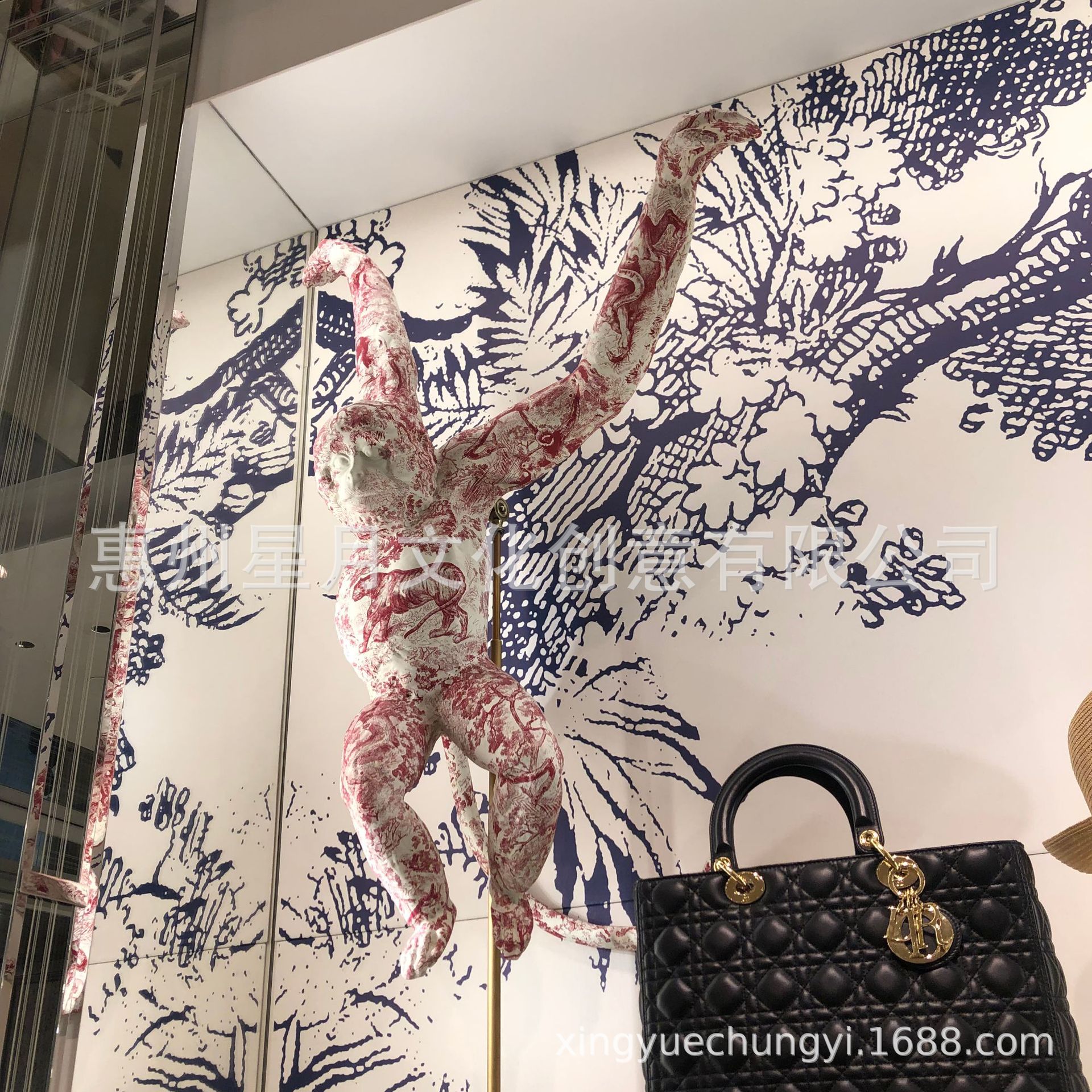 Produksi Pameran Jendela FRP dalam Ruangan Gambar IP Merek Dekorasi Lansekap Simulasi Hewan Monyet Ornamen Lantai