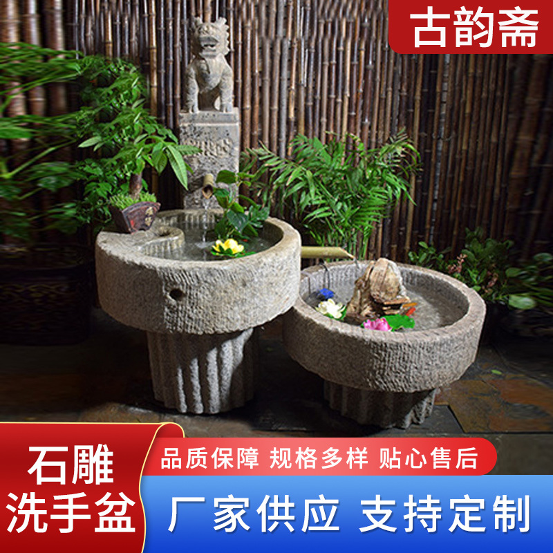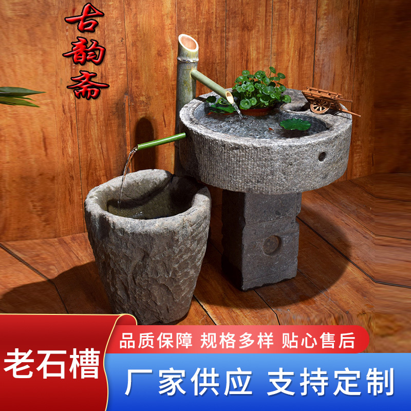 Batu ukiran bunga pot bak cuci tangki ikan kombinasi batu tua melalui lanskap air dalam ruangan halaman lanskap balkon feng shui mengalir ornamen air