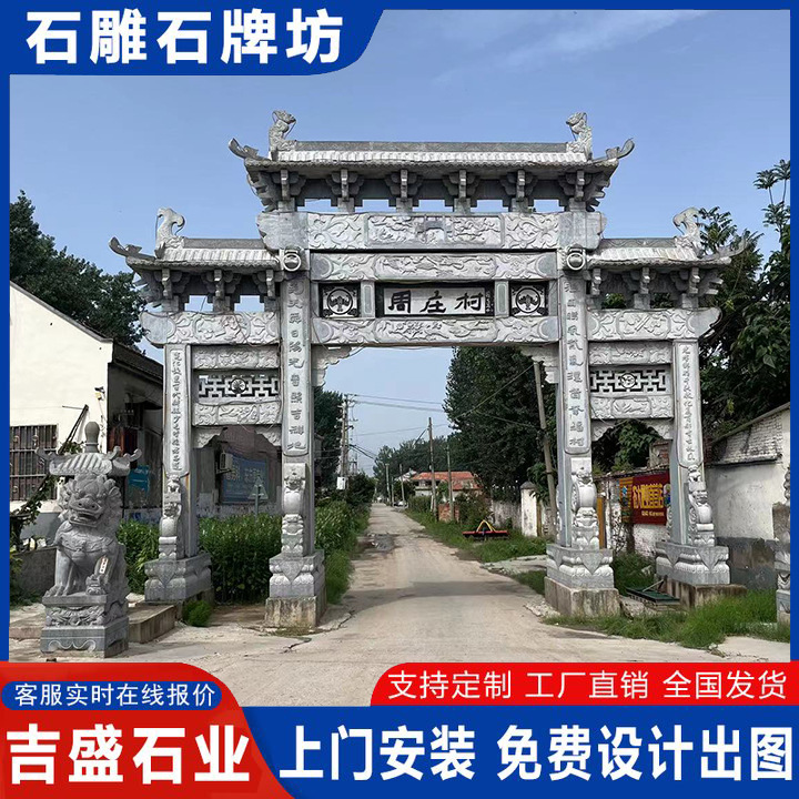 Pintu masuk desa adalah gerbang gerbang batu antik batu biru