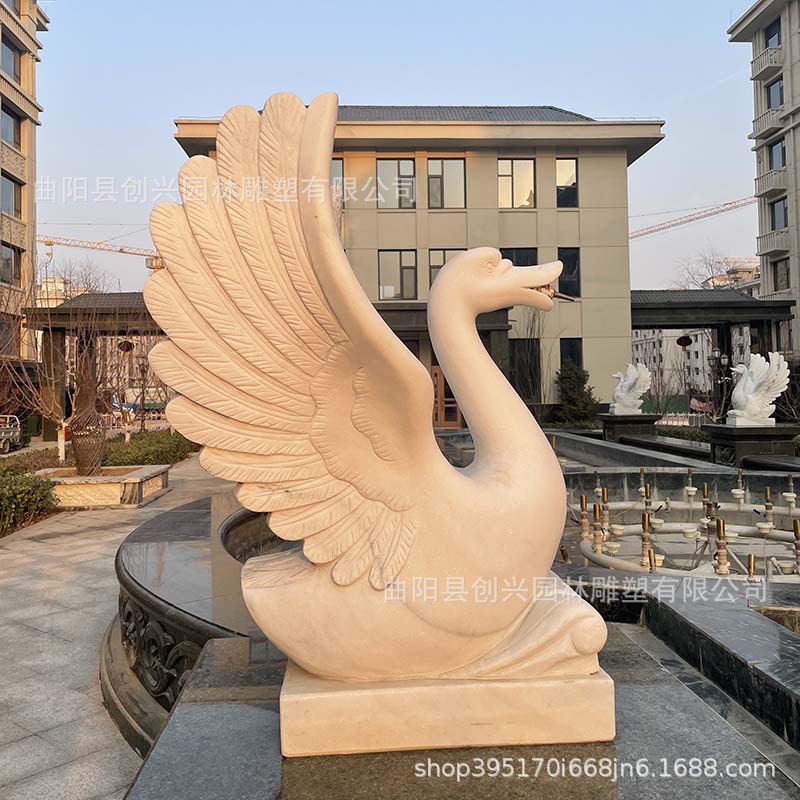 Semprotan air ukir batu, angsa Han Bai giok ludah air bebek granit luar ruangan mengalir dekorasi air mancur taman lanskap persegi