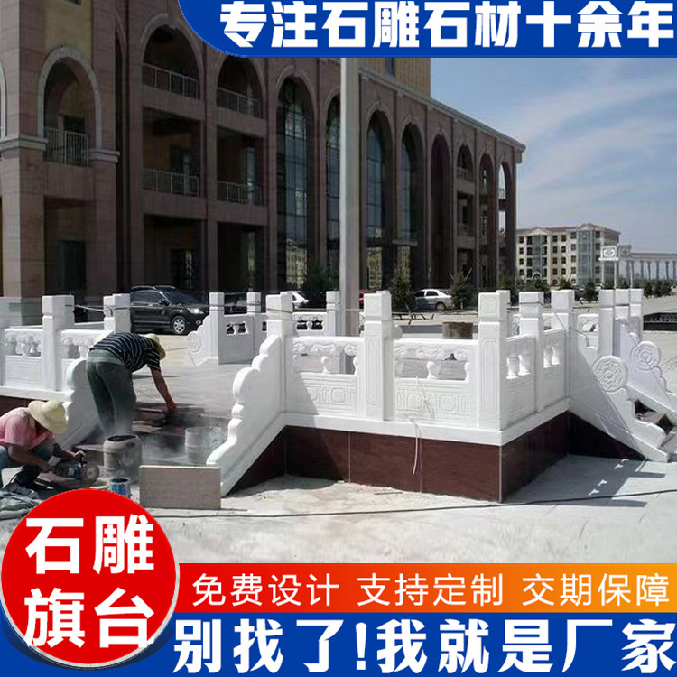Lapangan Kampus Stasiun Pengangkat Bendera marmer putih Proyek Kota Stasiun Pengibar Bendera Luar Ruangan Mendukung Ukuran Platform Ukiran Batu Kustom