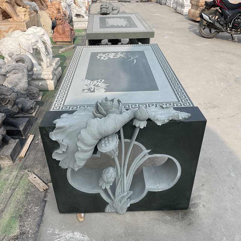 Meja batu ukir batu kustom meja batu berlian biru meja batu granit meja batu bangku luar ruangan halaman taman meja teh patung produsen