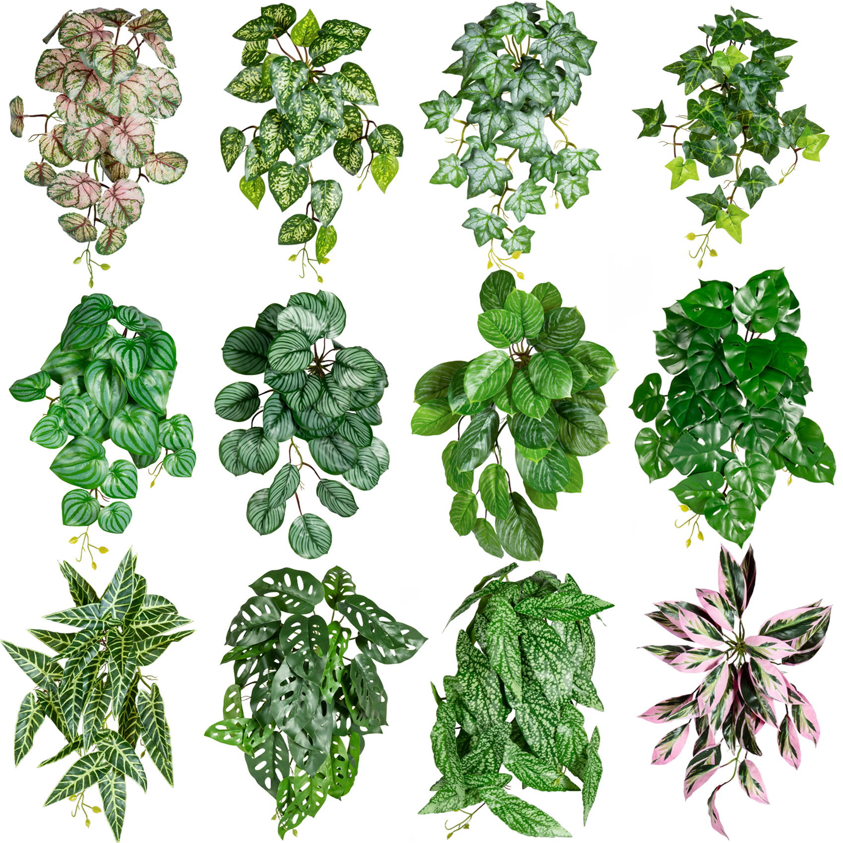Ornamen dekorasi dinding tanaman palsu, hiasan dinding hijau pakis bionik lanskap daun dan tanaman simulasi tinggi