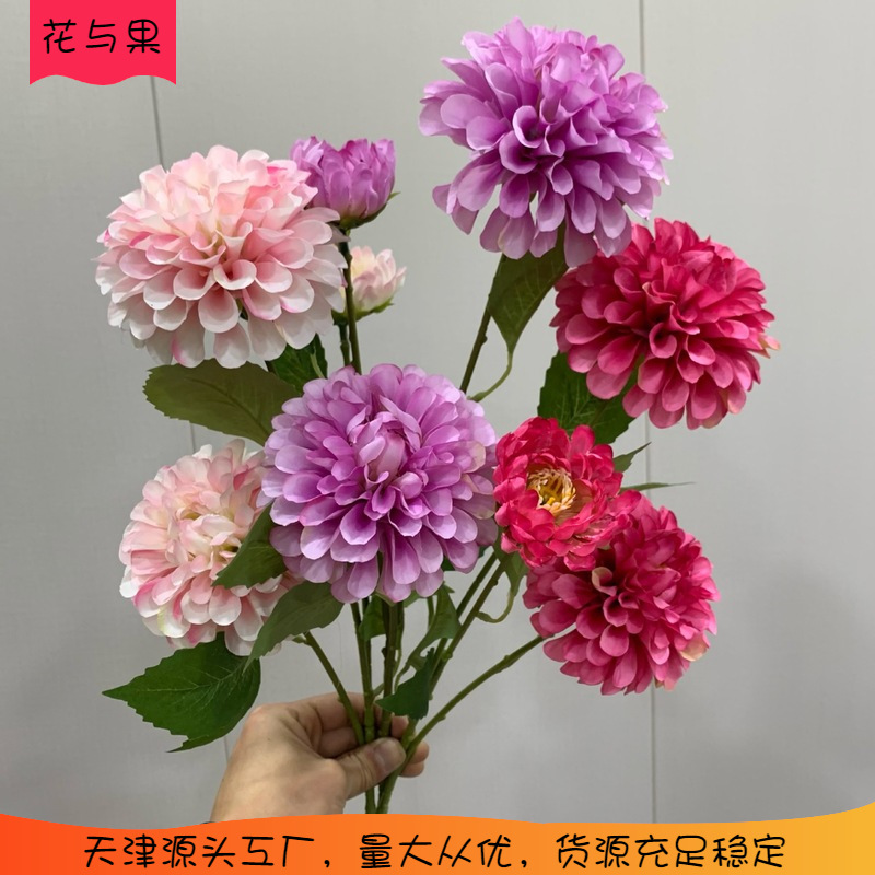 Buket artifisial 3 kepala gelap bunga pernikahan buatan dekorasi Kecantikan rumah luar ruangan bunga palsu grosir