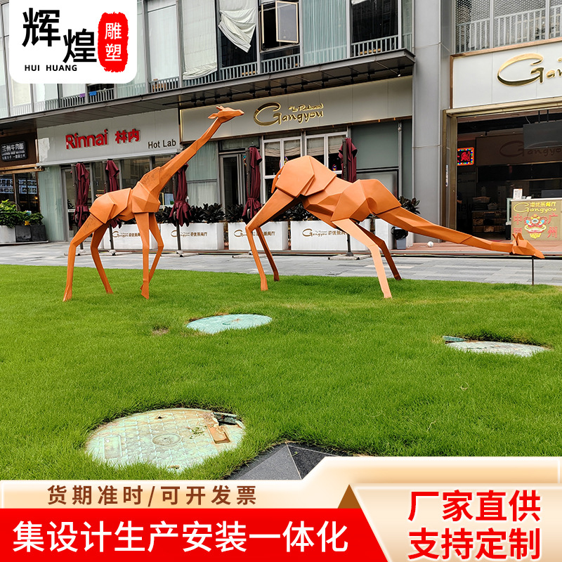 Dekorasi jerapah abstrak geometris besar jerapah dekorasi luar ruangan lanskap luar ruangan lanskap patung potong baja tahan karat