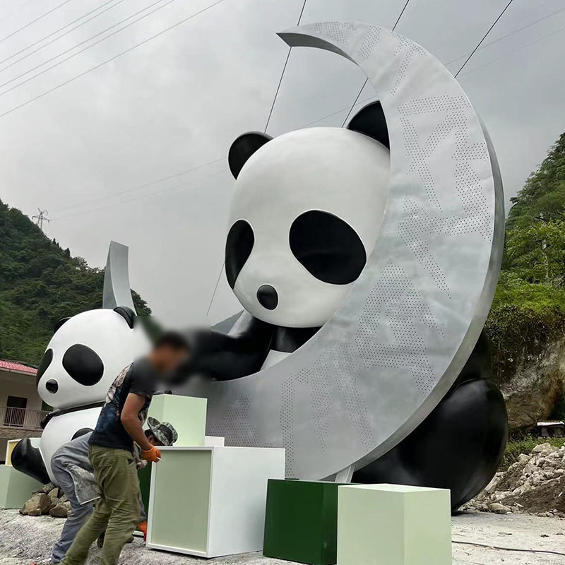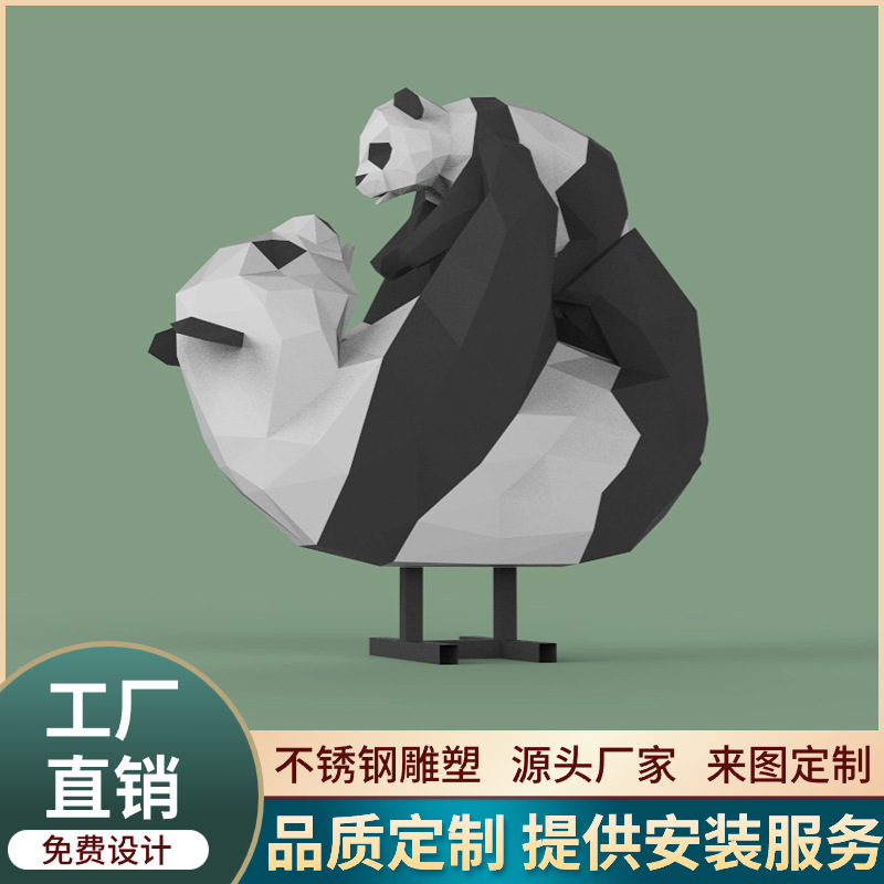 Luar ruangan besar baja nirkarat patung geometris permukaan blok panda patung rusa pemandangan taman produsen Chengdu