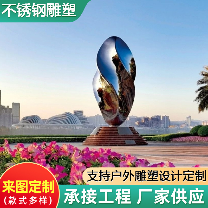 Produsen patung stainless steel luar ruangan besar kustom taman lanskap logam cermin ornamen patung