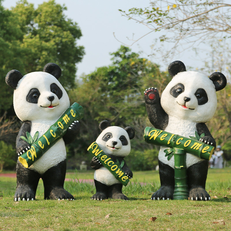Dekorasi Rumput Patung FRP Taman Panda Simulasi Luar Ruangan Dekorasi Makan Bambu Dekorasi Halaman Taman Panda