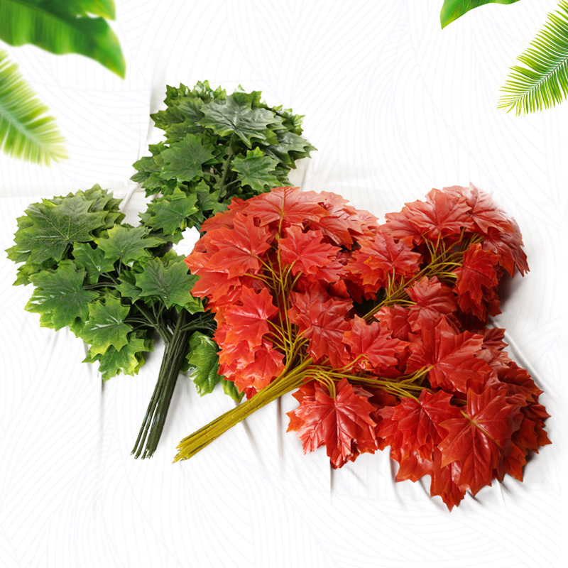 Daun maple merah buatan, dekorasi taman teknik daun maple palsu daun maple hijau daun maple rumah