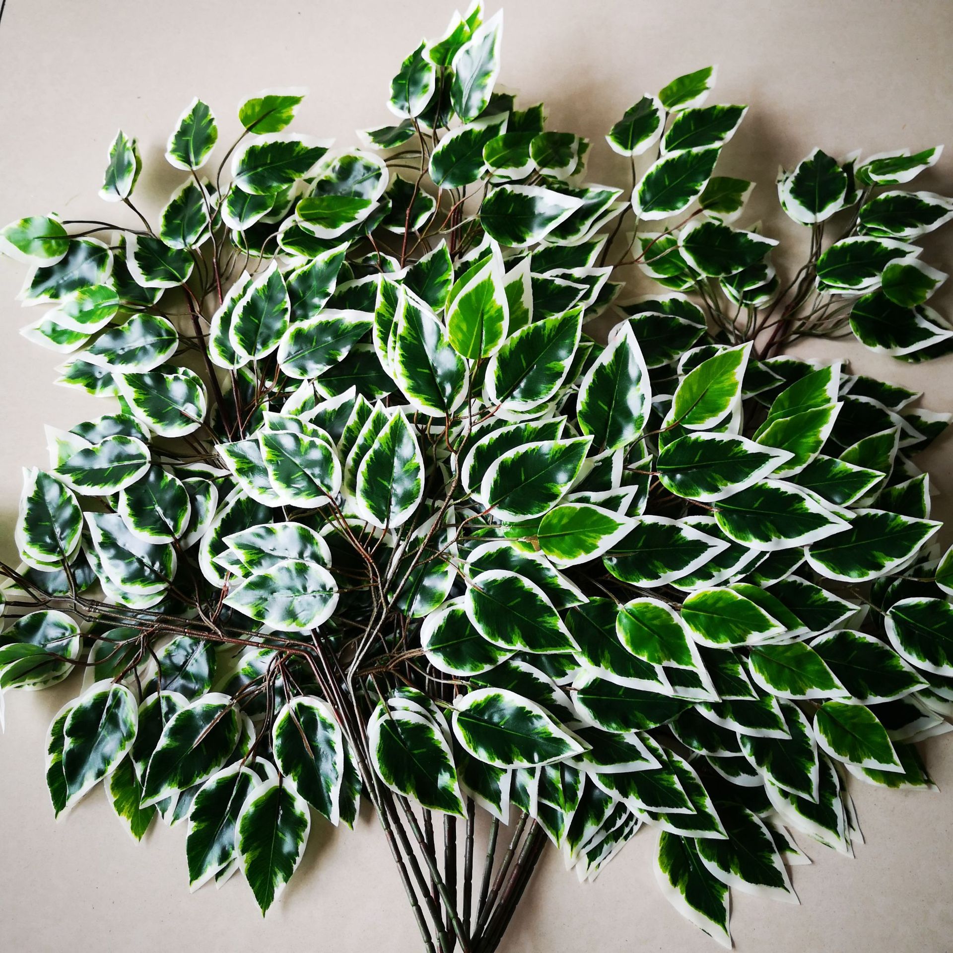 Daun buatan tepi putih plastik daun pohon Banyan, teknik taman cabang palsu tanaman buatan Pohon Banyan Cabang