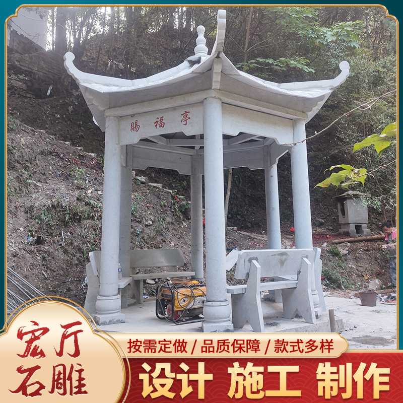 Jiaxiang desain pabrik ukiran batu heksagonal pemandangan taman paviliun lapisan ganda