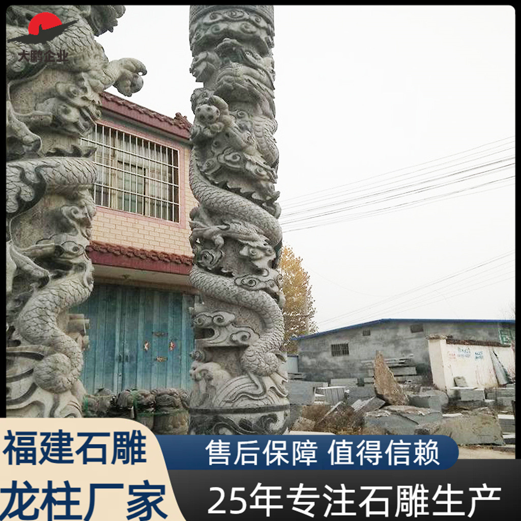 Pasokan produsen batu berlian biru ukiran kolom naga konstruksi persegi Kota kolom naga dekorasi lanskap taman ukiran