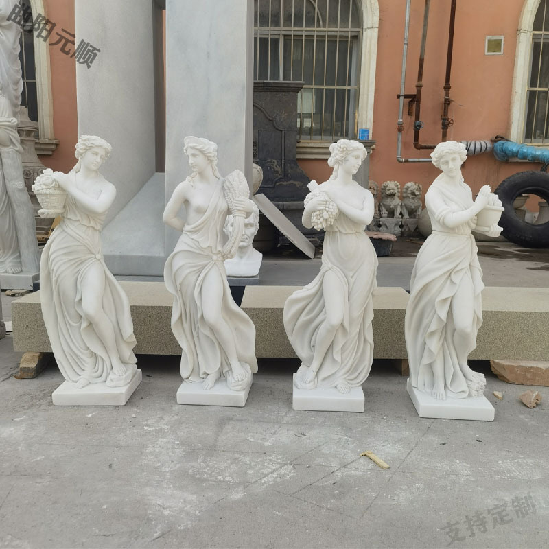 Patung ukiran batu lanskap taman, empat musim Dewi giok putih patung Barat ukiran tubuh Eropa