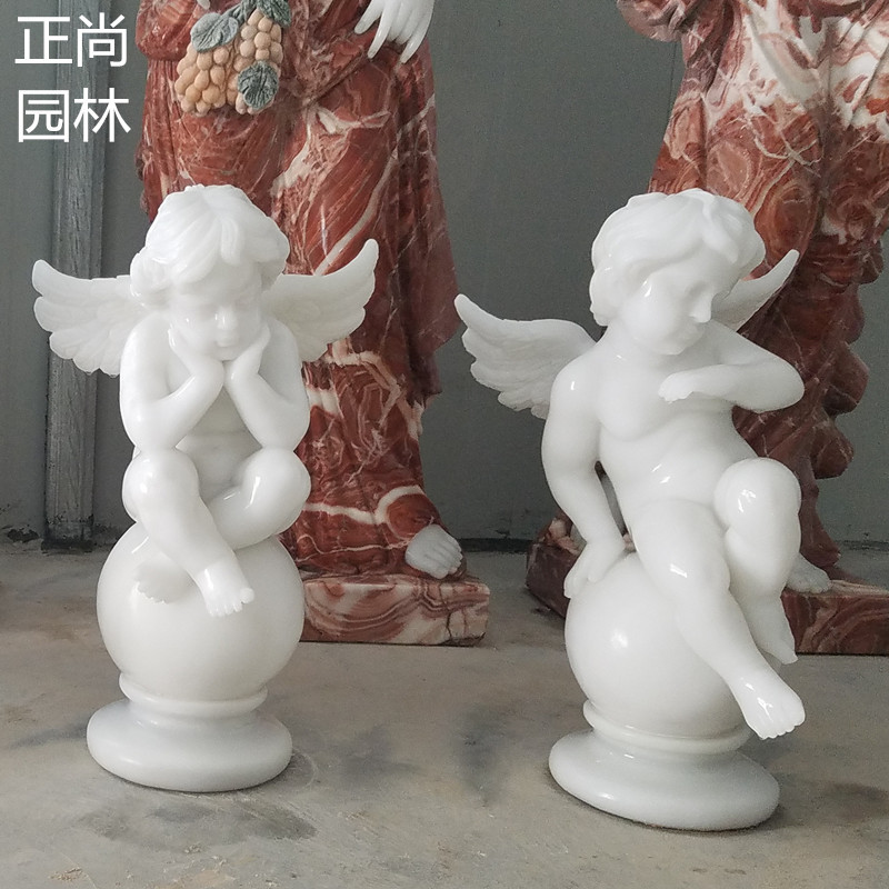 Pasokan batu marmer putih ukiran, patung karakter barat Eropa, patung malaikat, patung simulasi batu