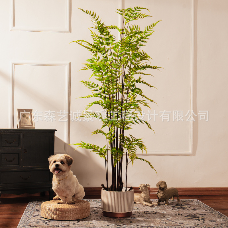 Tanaman pakis buatan hijau gaya Nordic besar, pohon pakis buatan bonsai jendela ruang tamu ornamen dekorasi lanskap buatan lantai