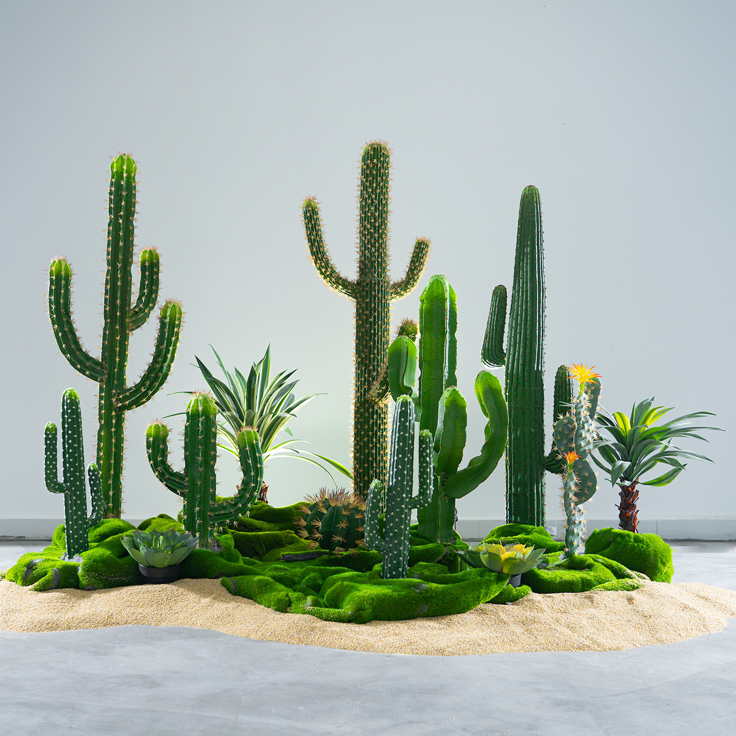 Tanaman pasir simulasi tingkat tinggi Kaktus mengukur penguasa pot palsu kolom bola bionik dalam ruangan dekorasi lanskap tanaman hijau