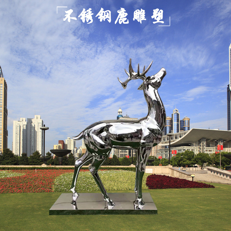 Produsen patung baja tahan karat besar cermin kustom geometris patung lanskap rusa taman ornamen hewan persegi
