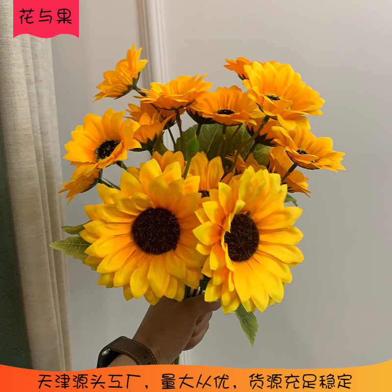 Buket bunga palsu pernikahan buatan bunga matahari terpisah pabrik Dekorasi kecantikan rumah luar ruangan bunga palsu grosir