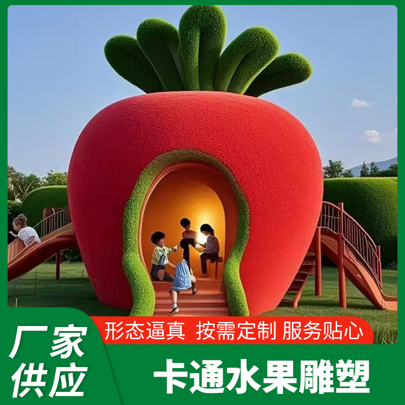 Ukiran Hijau Bentuk Buah Kartun Raksasa Bentuk Taman Bertema Realistis Pantai Gazebo Pemandangan Pantai Pondok