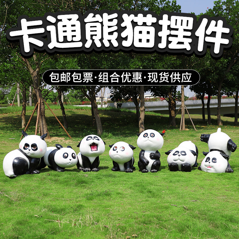 Kartun panda fiberglass patung sketsa taman pemandangan dekorasi sketsa taman halaman real estate dekorasi komunitas