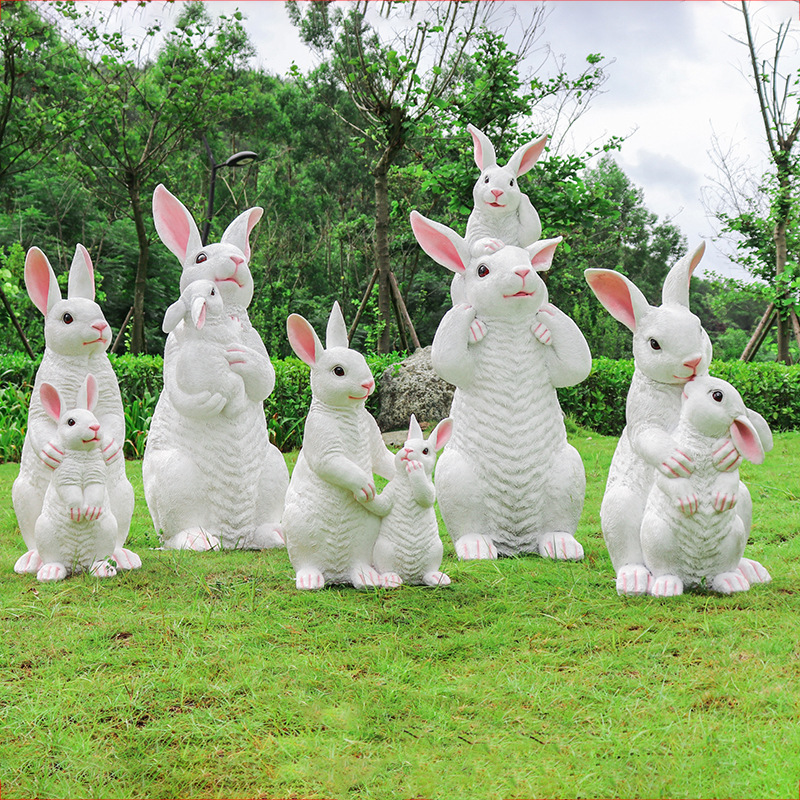 Ornamen dekorasi sketsa lanskap taman, simulasi luar ruangan ibu dan anak kelinci patung hewan FRP taman belanja Taman Taman