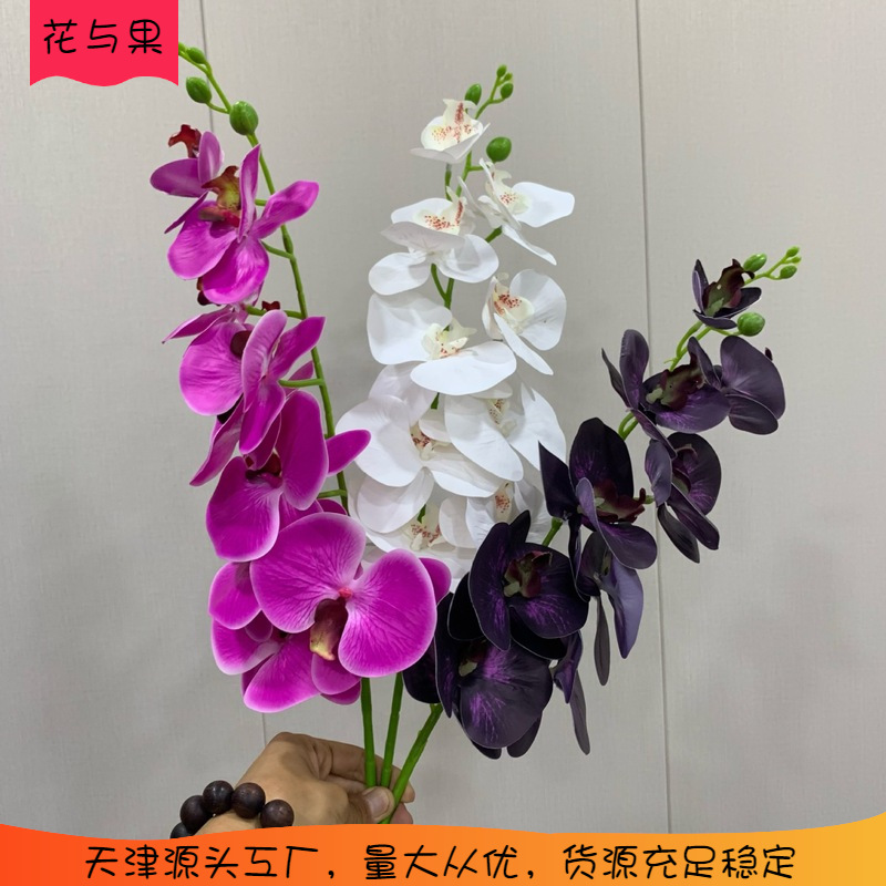 Bunga buatan phalaenopsis, hiasan kecantikan rumah pernikahan luar ruangan 9 Kepala 3D bunga palsu grosir