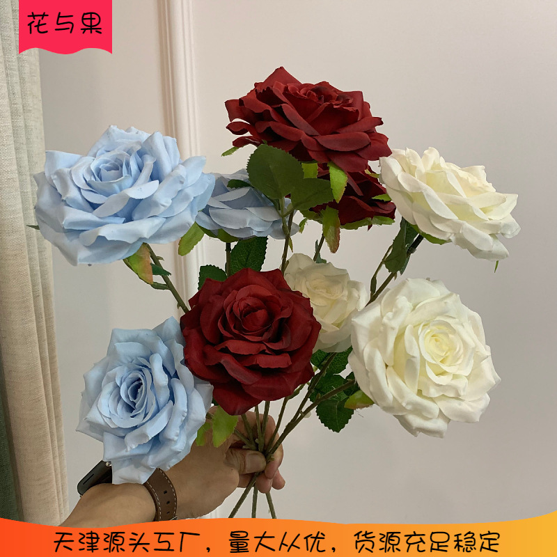 Buket buatan mawar berlian 3 kepala pabrik bunga buatan pernikahan luar ruangan dekorasi Kecantikan rumah bunga palsu grosir